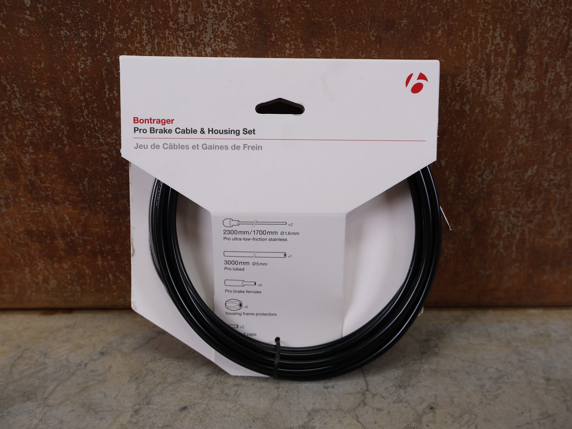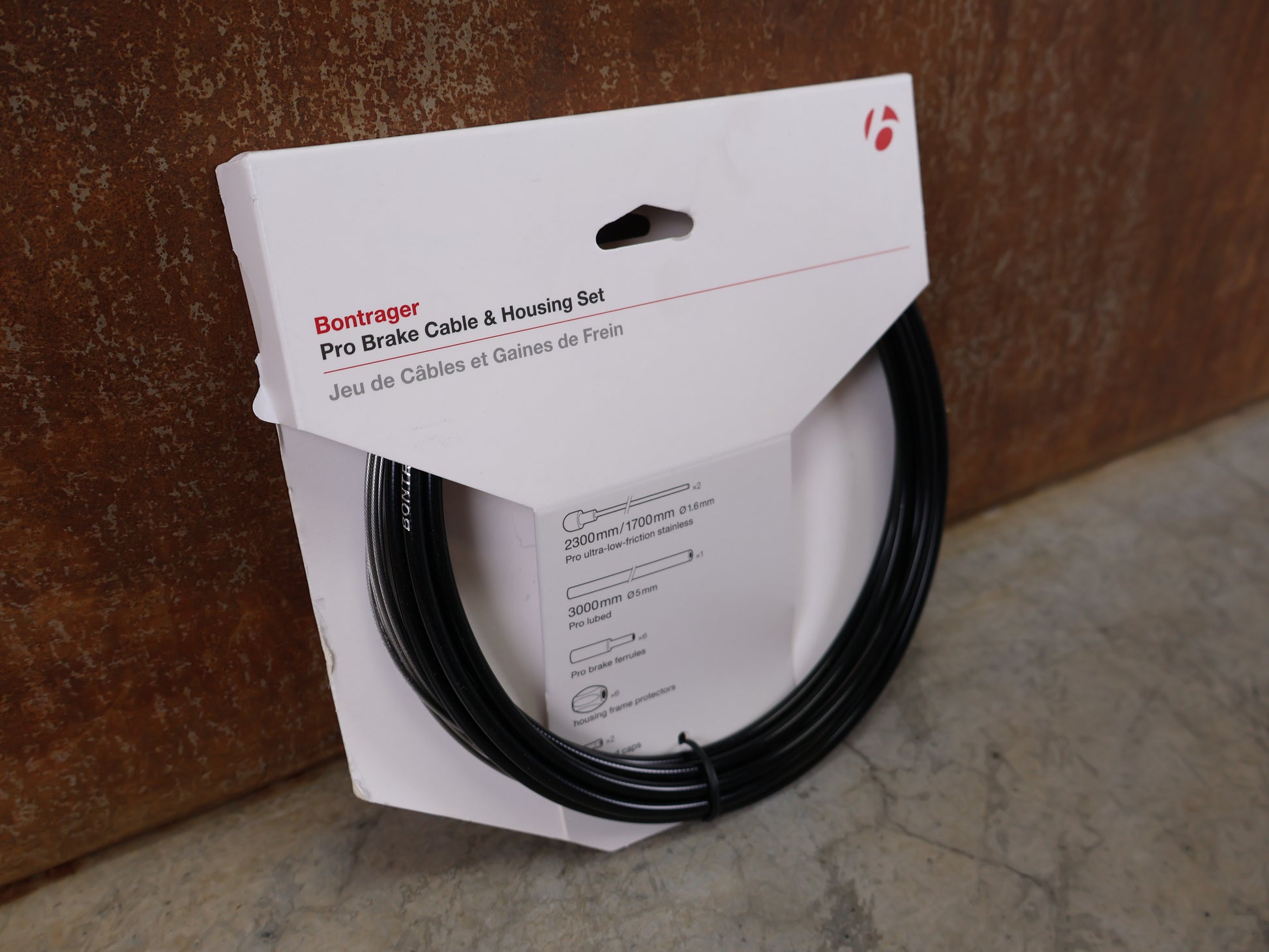• Lieferumfang: 2x Bremszüge (1700/2300 mm), 1x Zughülle (3000 mm), Pro-Bremszugklemmhülsen, Rahmenschützer, Zugendkappen.